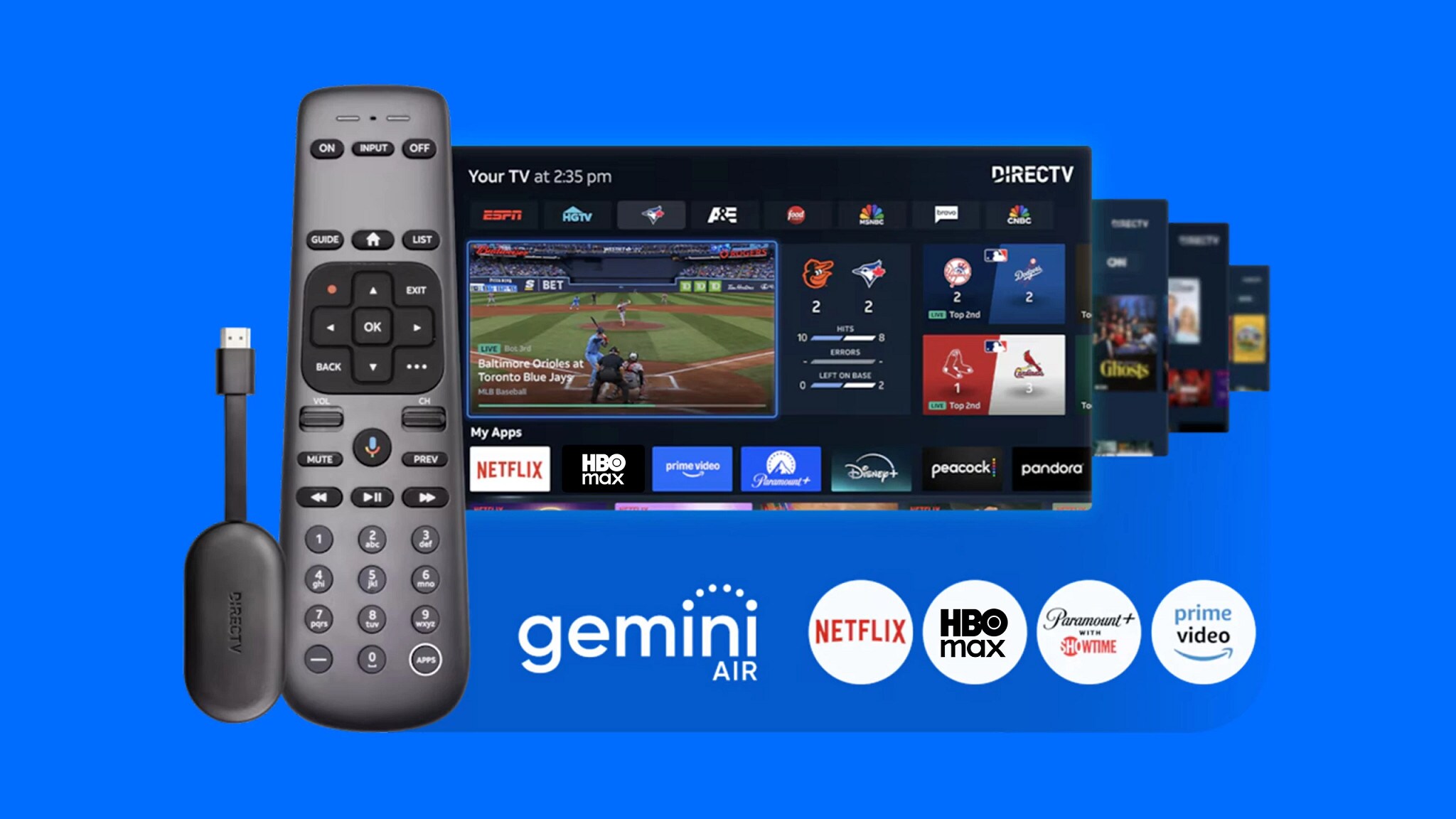 Gemini air streaming device connects with Netflix, Max, Paramount plus with Showtime, and Prime video.